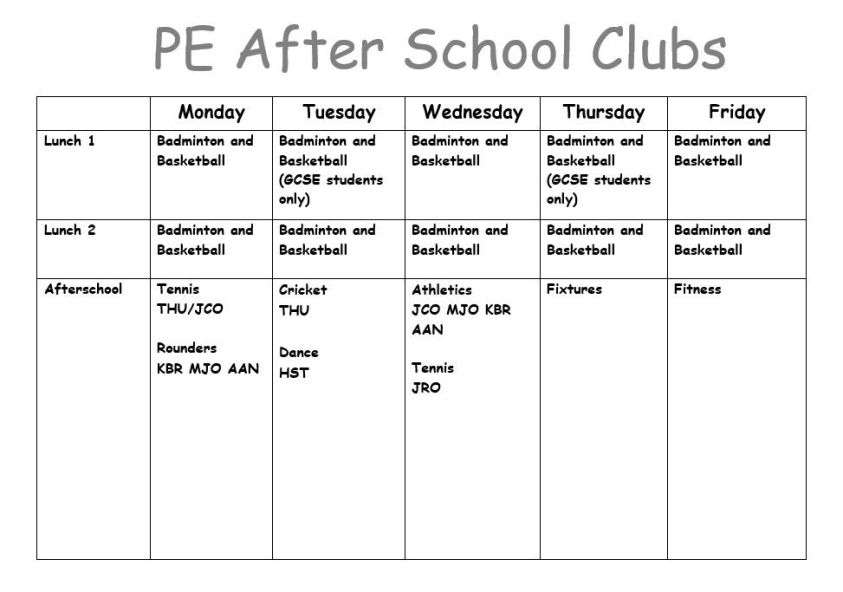 Please see our School Clubs below: